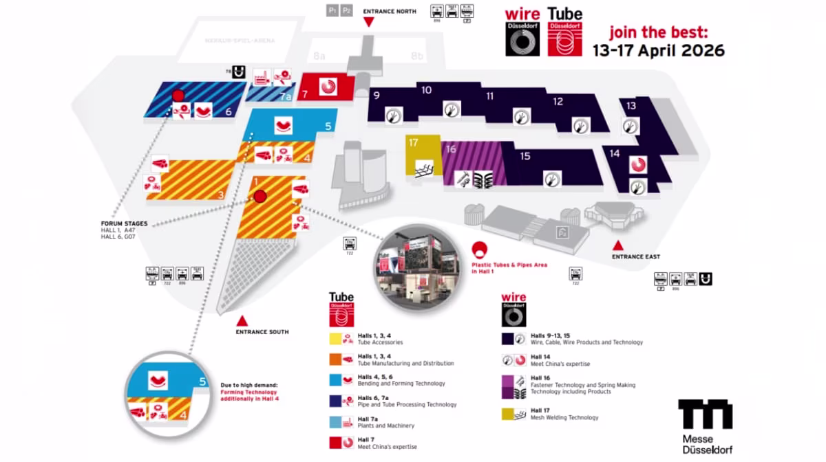 Wire & tube Düsseldorf 2026 will present the full spectrum of modern manufacturing technologies, from machinery and systems for the production of wire, cable, and tube, to new materials, technologies, and innovative final products. For five days, the Messe Düsseldorf halls will become a focal point for high technology, innovation, and global networking.